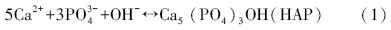 在磷酸鈣鹽類中,羥基磷酸鈣(Hydroxylapatite,HAP)是目前所知最為穩(wěn)定的,因此,CP結晶法磷回收就是以HAP形式從污水中回收磷,實際上就是創(chuàng)造生成CP的有利條件.當溶液中的〖Ca2+〗、〖OH-〗和〖PO43-〗 超過HAP溶度積的時候,就可按化學反應式(1)發(fā)生結晶沉淀反應,生成HAP晶體.溶液pH值會影響HAP的溶解度及其組分的離子活度,從而影響其結晶過程,因此,它是CP結晶法回收磷的主要影響因素之一.