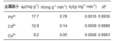 表1 Pb2+、Cd2+與Cu2+的準(zhǔn)二級吸附動力學(xué)參數(shù)