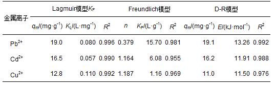 表3 Pb2+、Cd2+及Cu2+在BBMC上吸附的3種等溫模型參數(shù)
