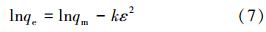 式中,qm是計(jì)算的最大吸附量(mg · g-1),k是D-R常數(shù)(mol2 · kJ-2),表示polanyi 能(J · mol-1),它的計(jì)算式為: