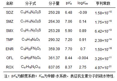 抗生素類藥物在環(huán)境中的遷移轉化等過程都與抗生素物質的物理化學性質相關.表 3為實驗中幾種抗生素的物理化學性質.