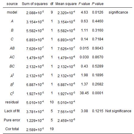 2.2 響應(yīng)面方法優(yōu)化反應(yīng)條件