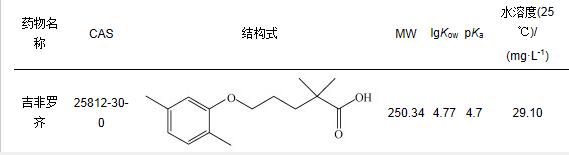 近年來, 由于在飲用水、污水處理廠以及地表水和地下水中被頻繁檢出, 藥物和個人護(hù)理用品(PPCPs)作為一類新興環(huán)境污染物日益受到人們的關(guān)注.該類物質(zhì)難以生物降解, 在污水處理廠中不能被完全去除, 使得它們在自然水體中的含量不斷累積.吉非羅齊(Gemfibrozil, GEM)是一種臨床常用的貝特類降血脂藥物, 理化參數(shù)見表 1.其主要用來降低人體內(nèi)甘油三酯和總膽固醇的水平, 減少冠心病的發(fā)病率.據(jù)報道, GEM在傳統(tǒng)的污水處理工藝中的去除率較低, 大約集中在16%~46%之間.由于污水處理廠的不完全降解, GEM在各類水體中被頻繁檢測出來, 其中污水處理廠出水中檢測濃度達(dá)到19.4 μg·L-1, 在地表水中的濃度為0.75~1.5 μg·L-1, 在地下水中的濃度為0.751 μg·L-1, 在飲用水中的濃度也達(dá)到0.07 μg·L-1.盡管沒有研究表明GEM會對人體有直接毒性, 但多項(xiàng)研究表明其具有生態(tài)毒性, 會對大型溞和魚類的生殖和生理產(chǎn)生不利影響.如何有效修復(fù)GEM帶來的水體環(huán)境污染, 減弱其生態(tài)毒理效應(yīng), 成為眾多學(xué)者關(guān)注的重點(diǎn).