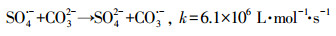 HCO3-和CO32-是自然水體中常見的無機(jī)陰離子, 會對水體的堿度產(chǎn)生影響, 其中HCO3-的存在最為廣泛.不同濃度HCO3-對GEM降解的影響如圖 4b所示, 從圖中可知, HCO3-對GEM的降解有強(qiáng)烈的抑制作用, 并且抑制程度隨HCO3-濃度的增加而增強(qiáng).當(dāng)加入100 mmol·L-1HCO3-時, 60 min內(nèi)GEM的去除率只有53.4%, 遠(yuǎn)遠(yuǎn)低于未加HCO3-時的86%.這一方面是因?yàn)镠CO3-的加入, 增加了溶液的初始pH, 由上文可知, 堿性條件下GEM的降解效率要低于酸性和中性條件, 所以從改變?nèi)芤撼跏紁H的角度, HCO3-的加入會抑制GEM的降解;另一方面是因?yàn)槿芤阂坏┘尤際CO3-, 系統(tǒng)便會產(chǎn)生HCO3-/CO32-(式10), 而HCO3-/CO32-作為SO4·-和HO·的猝滅劑, 可以轉(zhuǎn)化生成HCO3·和CO3·-(式(11)~(15)).HCO3·/CO3·-和苯酚、苯胺等富電子化合物有著較高的反應(yīng)速率常數(shù), 但它們和其他有機(jī)物的反應(yīng)速率常數(shù)通常要比SO4·-和HO·低2~3個數(shù)量級.可見正是HCO3·和CO3·-對GEM較弱的氧化能力降低了GEM的降解速率.