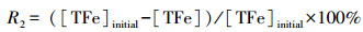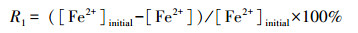式中, [TFe]為總Fe濃度(mg·L-1);X1和X2分別為t1和t2時(shí)刻的Fe2+濃度(mg·L-1).