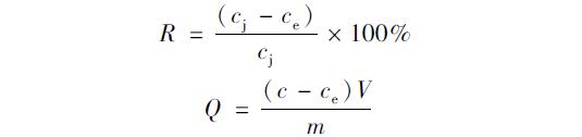吸附率(R)和吸附容量(Q)的計(jì)算公式: