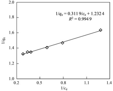 將吸附平衡所得數(shù)據(jù)分別用Langmuir方程和Freundlich進(jìn)行擬合,吸附模型線性表達(dá)式如下.