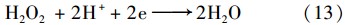 在光電Fenton技術(shù)處理污泥脫水液過程中,除過H2 O2分解產(chǎn)生 ·OH氧化廢水中的有機物,同時電解作用以及電Fenton作用也有助于提高COD的去除率. 從圖 3(e)可以看出,當(dāng)外加電壓由5.0 V增加到7.5 V時,COD去除率逐漸提高. 這主要是由于電解作用以及電Fenton作用的加強,同時有更多的Fe3+被還原成Fe2+,因而產(chǎn)生更多的 ·OH,COD去除率逐漸提高. 然而,當(dāng)外加電壓繼續(xù)提高時,副反應(yīng)(12)、 (13)的影響也逐漸明顯,H2 O2逐漸被消耗,影響 ·OH的產(chǎn)生. 另外,隨著外加電壓的升高,在陰極表面出現(xiàn)大量的黃色物質(zhì). 可能的原因是在陰極附近,大量的H+被消耗,導(dǎo)致陰極附近區(qū)域溶液pH值升高,大量的Fe3+以及Fe2+形成沉淀,這也將會影響Fenton反應(yīng)的進行,影響反應(yīng)中 ·OH的產(chǎn)生. 因而當(dāng)外加電壓由7.5 V上升到10.0 V時COD去除率反而降低. 但是當(dāng)繼續(xù)增加外加電壓從10.0 V到20.0 V時,COD去除率緩慢提高,分析是因為此過程中電解作用的不斷加強. 如圖 3(e),外加電壓為7.5 V時和外加電壓為20.0 V時COD去除率變化不大,因此7.5 V被選定為最佳外加電壓.