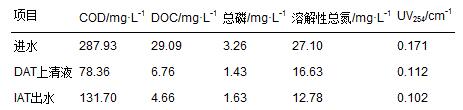 試驗裝置進水取自天津市某市政污水處理廠沉砂池出水,經(jīng)實驗室規(guī)模的A/DAT-IAT工藝處理后,取DAT池上清液及IAT出水進行了常規(guī)指標測定,結(jié)果見表1.