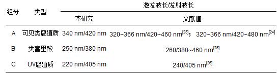 廢水在處理過程中,微生物會代謝合成多種有機物,如色氨酸、 輔酶、 腐殖酸等[20],這些物質(zhì)的種類和數(shù)量與廢水廠的運行狀態(tài)有著密切聯(lián)系. 這些物質(zhì)在激發(fā)光的作用下,會產(chǎn)生出特征的發(fā)射光,在熒光光譜圖上出現(xiàn)特征峰[21,22].