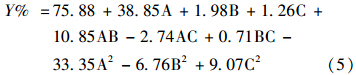 表 2 Box-Behnken實(shí)驗(yàn)因素水平及其編碼