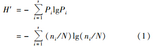 采用Shannon-wiener多樣性指數(shù)H′表征微生物種群多樣性,其計(jì)算公式如下[17]: