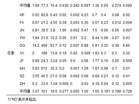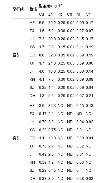 表 1 不同季節(jié)采樣組10家豬場沼液重金屬濃度的變化情況1)