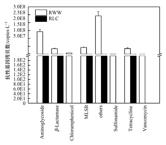 由于垃圾滲濾深度處理后產(chǎn)生了難以處理的濃縮液,垃圾滲濾液(包括濃縮液)往往被運(yùn)送到城市生活污水處理廠進(jìn)行合并處理[13, 17].目前,城市生活污水處理過程中的抗生素抗性基因污染分布及演變有較多相關(guān)研究[18, 19],并且主要是針對(duì)磺胺類、四環(huán)素類等少數(shù)幾種抗生素抗性基因.針對(duì)城市生活污水(接收垃圾滲濾液進(jìn)行合并處理)和生活垃圾滲濾液環(huán)境抗生素抗性的對(duì)比研究,從抗生素抗性譜的角度全面研究這兩者間的抗性基因污染還沒有或者比較少相關(guān)研究報(bào)道.因此,對(duì)城市生活污水和生活垃圾滲濾液中抗生素抗性種類、分布格局開展對(duì)比研究,比較兩者之間的異同,綜合分析研究城市生活污水和垃圾滲濾液抗生素抗性基因污染狀況,對(duì)于加強(qiáng)城市生活污水和垃圾滲濾液管理與處置,評(píng)估兩者的生態(tài)安全情勢(shì)和環(huán)境風(fēng)險(xiǎn)顯得十分必要.