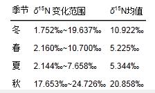 表 2 城市污水不同季節(jié)的δ15N值變化情況