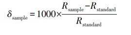 式中,R表示15N/14N的比值,一些標(biāo)準(zhǔn)物質(zhì)中不同的δ15N值在不同實驗室之間廣泛作為對比標(biāo)準(zhǔn),因此,確定δ15N值的分析精度是通過對比這些標(biāo)準(zhǔn)參考物質(zhì)的結(jié)果所得到.
