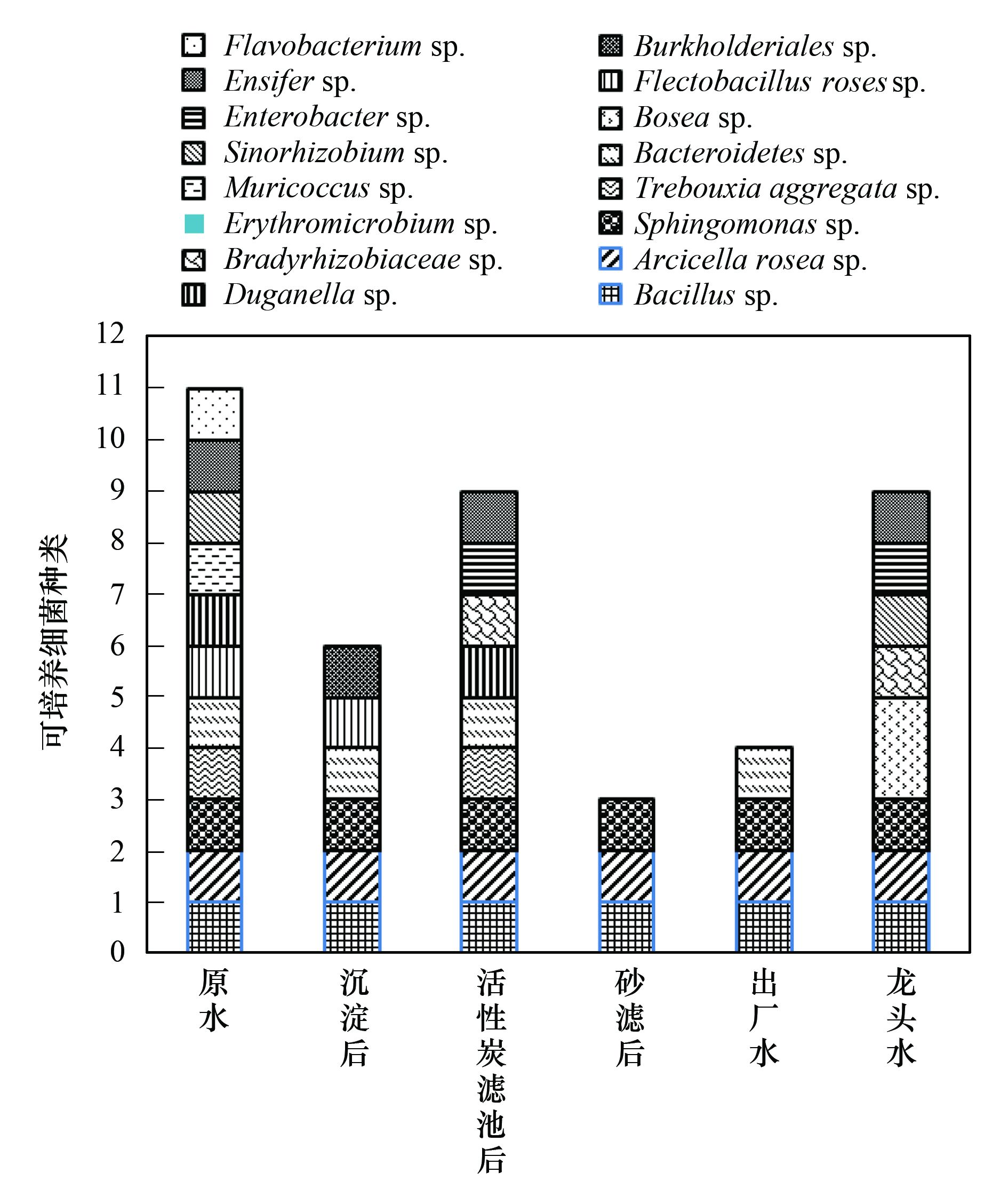 圖 1 凈水工藝對(duì)飲用水中可培養(yǎng)微生物多樣性的影響