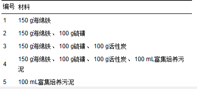 3號(hào).硫鐵炭復(fù)合填料;4號(hào).微生物耦合硫鐵炭復(fù)合填料;5號(hào).單純微生物