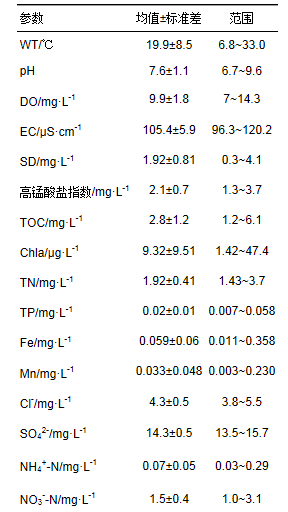 表 1 湯浦水庫水文和水環(huán)境變量特征