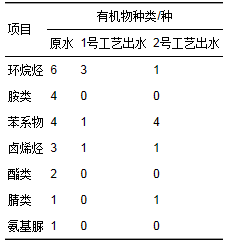 表 2 石化二級(jí)出水BAF-臭氧組合工藝處理前后主要有機(jī)物統(tǒng)情況