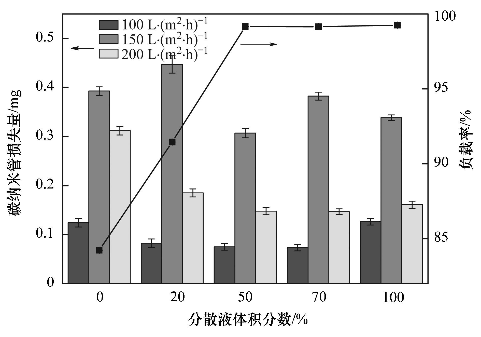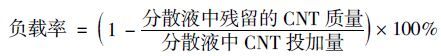 CNTs分散不均勻、 團聚都會導(dǎo)致改性膜制備過程中分散液中的CNTs不能全部負載于膜表面[18]. 因此,實驗中利用負載率來衡量膜改性過程中的CNTs負載情況,將負載率定義為CNTs實際負載量與CNTs投加量之比: