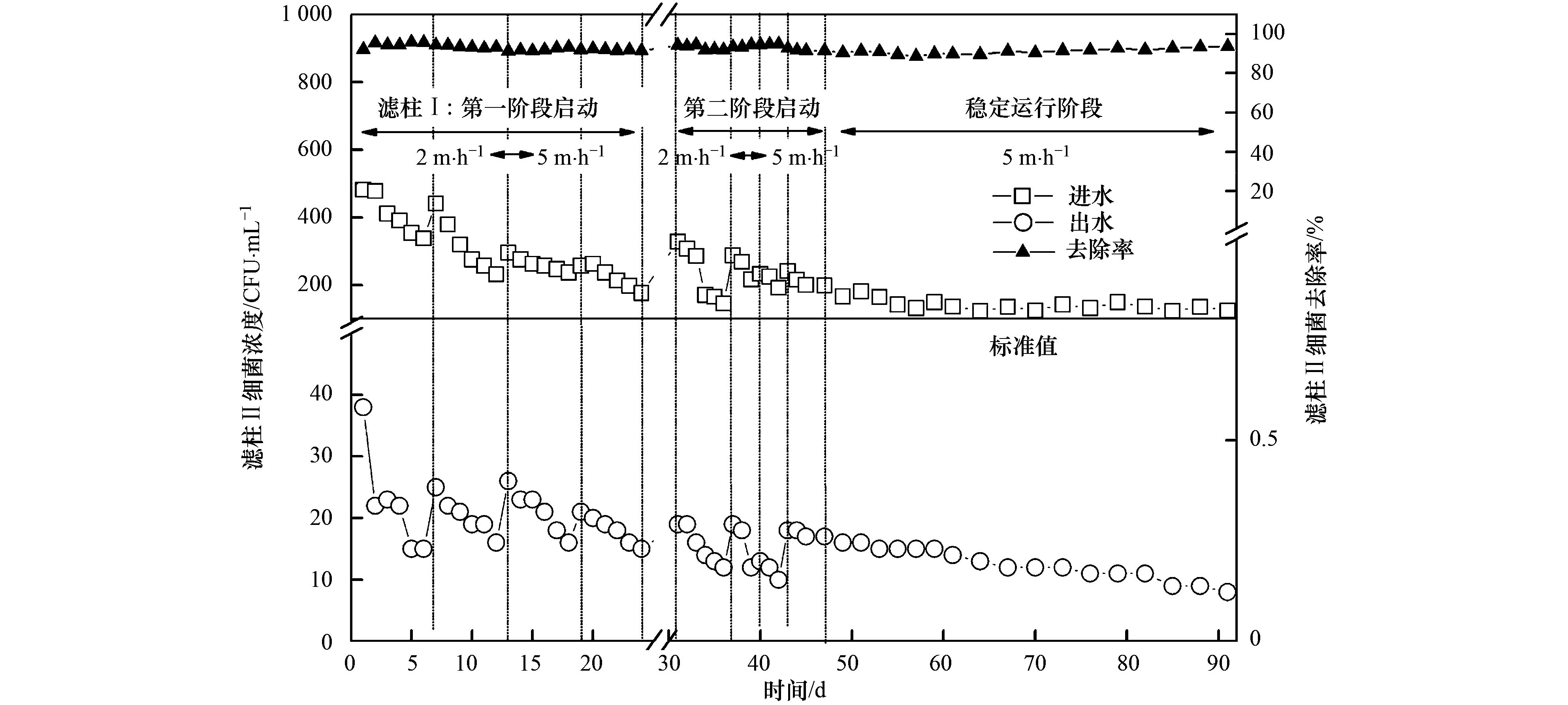 2.1.2 培養(yǎng)期濾柱Ⅱ出水細菌的去除情況