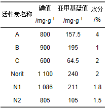 表 1 粉末活性炭參數(shù) (生產(chǎn)商提供)