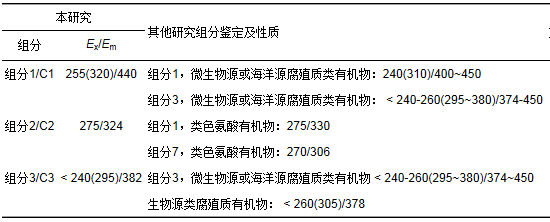 表 2 3種熒光組分的光譜特性及其物質(zhì)鑒定