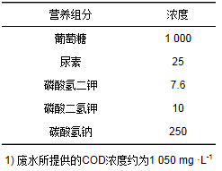 表 1 實(shí)驗(yàn)用廢水營養(yǎng)成分組成
