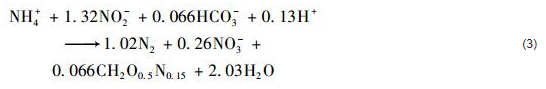 式中,ΔNO2--N表示出水NO2--N濃度與進水NO2--N濃度之差,ΔNO3--N表示出水NO3--N濃度與進水NO3--N濃度之差.