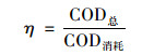 為了探究溫度對(duì)纖維素類降解菌和反硝化細(xì)菌的影響程度大小,通過(guò)纖維素降解產(chǎn)生的COD與反硝化消耗的COD之間的比例系數(shù)η進(jìn)行分析,即: