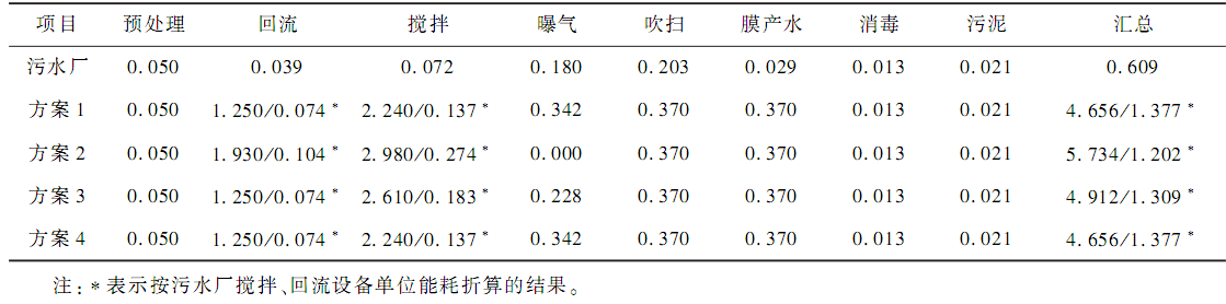 表 4 MBR 中試裝置各方案能耗統(tǒng)計表