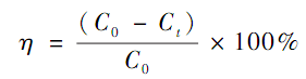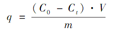 式中:C0 為溶液中初始 Cr(Ⅵ)質(zhì)量濃度,mg ·L - 1;Ct為 t 時(shí)刻溶液中剩余 Cr(Ⅵ)質(zhì)量濃度,mg ·L - 1;m為吸附劑用量,g;V 為吸附所移取的 K2Cr2O7 溶液體積,L。