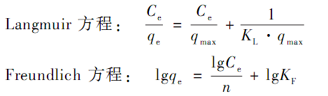式中:qmax為吸附劑的最大吸附量,mg·g- 1;KL、KF為吸附速率常數(shù); Ce為吸附平衡時(shí)的吸附量, mg·g- 1。