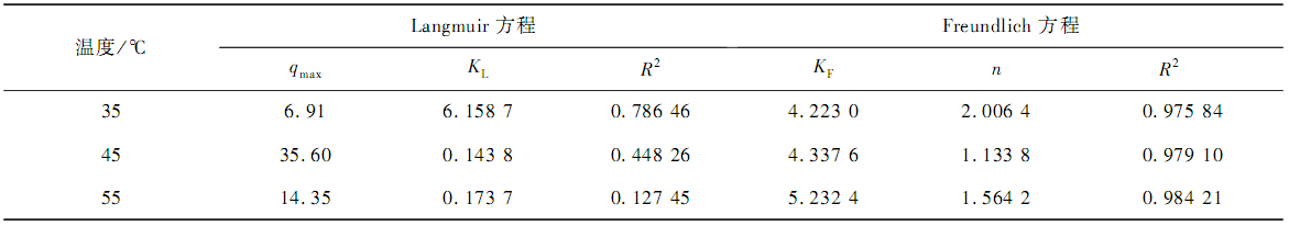 表 3 吸附等溫線參數(shù)