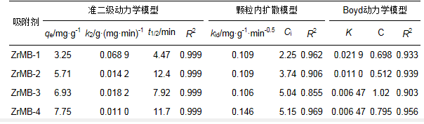 表 2 動(dòng)力學(xué)模型對(duì)鋯改性膨潤(rùn)土吸附水中磷酸鹽動(dòng)力學(xué)過程的擬合結(jié)果