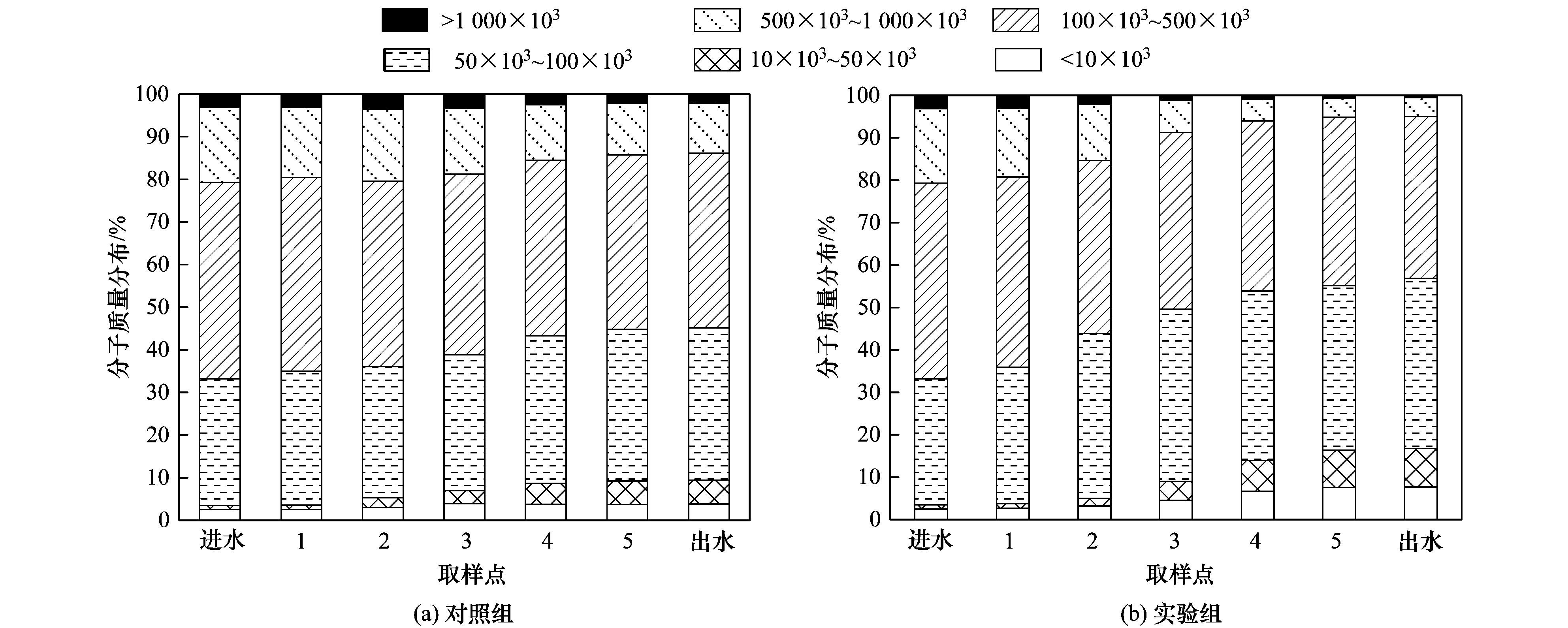 圖 5 垂直流濕地有機(jī)物相對(duì)分子質(zhì)量分布