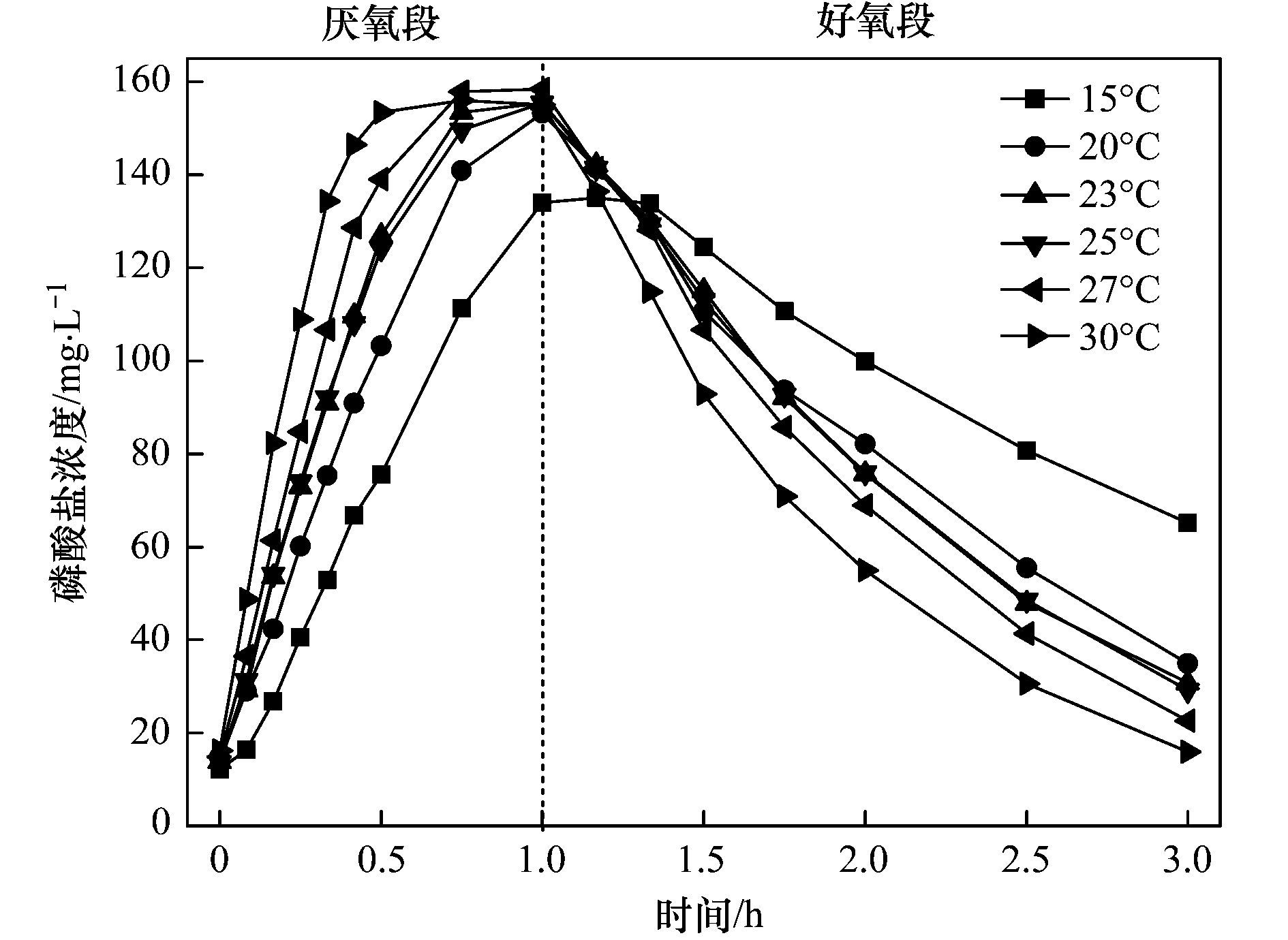 為了更好地理解高溫條件下EBPR系統(tǒng)中PAOHT的活性及基質(zhì)競(jìng)爭(zhēng)的影響, 本研究以實(shí)驗(yàn)室中30℃高溫條件下長(zhǎng)期運(yùn)行的具有較好除磷功能的SBR反應(yīng)器中的污泥為對(duì)象, 結(jié)合FISH技術(shù), 探討15~30℃(基于南方全年污水溫度范圍約為10~30℃)溫度條件下高溫聚磷菌(PAOHT)的釋磷、吸磷以及乙酸吸收速率, 以期為溫度變化幅度較大的地區(qū)和接收較高溫度工業(yè)廢水的生物除磷系統(tǒng)的穩(wěn)定運(yùn)行提供依據(jù).