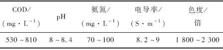 采用某染料廢水一級好氧生化出水為實驗原水,該染料廠主要生產(chǎn)各類高檔高質染料,產(chǎn)品多用于紡織品、紙張和皮革染色使用。廢水中含大量帶苯環(huán)的有機物,很難進行生物降解,由于不同產(chǎn)品對應的生產(chǎn)廢水不同,所以實驗原水水質波動較大,實驗期間,原水各指標見表1。
