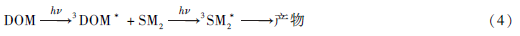 3)自由基猝滅實(shí)驗(yàn)表明,SM2 純水中光解的主要途徑為電子轉(zhuǎn)移產(chǎn)生激發(fā)三重態(tài)SM2 的直接光解,其自敏化光解過程可能不利于SM2 的光解;含有DOM 的溶液中,SM2 除了自身的直接光解過程外,還產(chǎn)生了促進(jìn)SM2 光解的激發(fā)三重態(tài)DOM,發(fā)生了敏化光解過程,激發(fā)三重態(tài)DOM 是促進(jìn)二級出水中SM2光解的主要活性物質(zhì)。