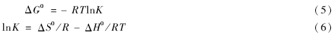 式中:R為常數(shù)8. 314 J · ( mol · K)-1;T為絕對溫度;K為某一溫度下的平衡常數(shù)(K = qe / Ge ) 。
