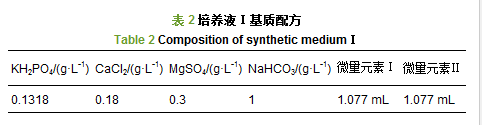 培養(yǎng)液Ⅰ和培養(yǎng)液Ⅱ基質(zhì)配方如表 2和表 3所示,調(diào)節(jié)培養(yǎng)液ⅠpH為7.0±0.5水平,培養(yǎng)液ⅡpH為8.0±0.5水平.