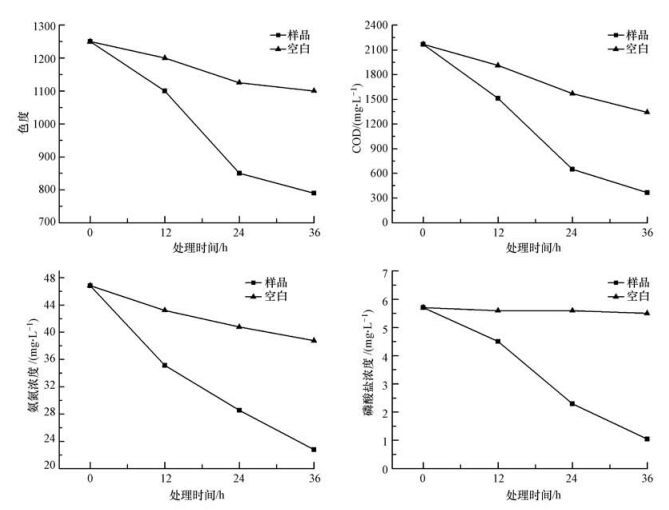 圖 1 菌群C對廢水樣品主要污染指標的降解曲線