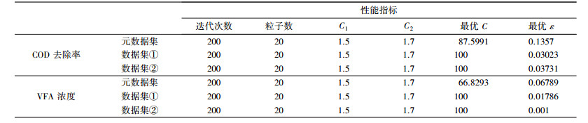 本文研究將基于SVM回歸和分類模型構建軟測量模型, 利用粒子群算法對模型參數(shù)尋優(yōu), 預測廢水厭氧處理出水VFA濃度和COD去除率, 為監(jiān)控和優(yōu)化廢水厭氧處理, 提高厭氧處理穩(wěn)定性和效率提供指導.