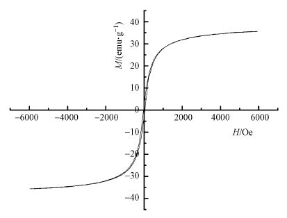 磁微球負(fù)載的硝基鋅卟啉催化劑的磁性性能由圖 4中的磁滯回線來(lái)表征.由圖 4可知,催化劑無(wú)明顯磁滯現(xiàn)象,根據(jù)磁化率定義:χ=M/H,可知χ>0,改性血紅素光催化劑具有順磁性.矯頑力和剩磁的檢測(cè)值接近于0,飽和磁場(chǎng)強(qiáng)度為35.12 emu · g-1,因此,在外加磁場(chǎng)存在的情況下,催化劑可以通過(guò)磁性收集,從降解液中分離出來(lái),當(dāng)取消外加磁場(chǎng)后,催化劑可再次分散于降解溶液中,從而實(shí)現(xiàn)方便的回收和重復(fù)使用.