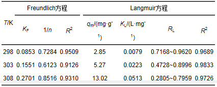 表 3 等溫吸附模型參數(shù)