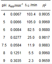 表 2 不同pH條件下克拉霉素降解的準(zhǔn)一級動力學(xué)模型的擬合參數(shù)