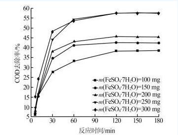 圖2不同F(xiàn)eSO4˙7H2O濃度對(duì)COD去除率的影響