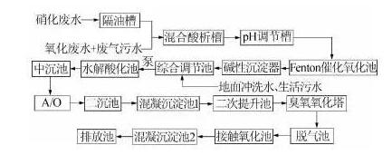 鑒于上述對(duì)硝基苯乙酮生產(chǎn)廢水特性,研究擬采用混合酸析—Fenton催化氧化法—水解酸化—A/O—臭氧氧化—接觸氧化等一系列組合工藝來(lái)處理對(duì)硝基苯乙酮廢水。