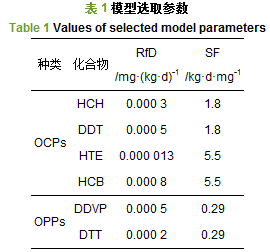 2.3 OCPs和OPPs健康風(fēng)險(xiǎn)評價(jià)